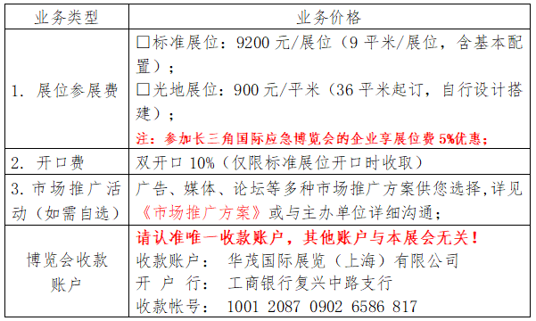 4. 安全产业服务展区:风险评估、灾害防治、消防技术等服务机构;应急测绘、特种救援、民间救援等;应急物流、应急物资仓储等;检测认证、安全生产评估检测等;消防、救援专业培训机构等;金融、保险、供应链等;