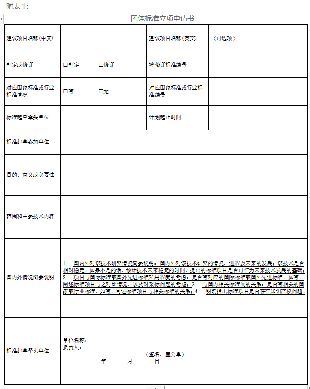 (一) 团体标准项目立项申请书(见附表1);