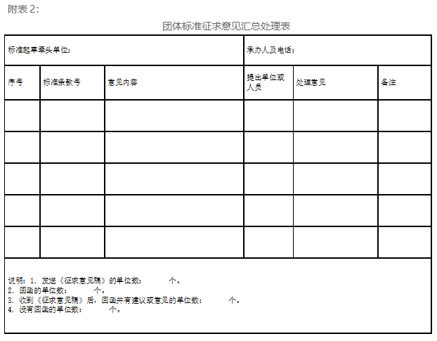 第十九条 征求意见期一般为30日。征求意见结束后,团体标准编制组应对反馈的意见认真分析研究,填写《团体标准征求意见汇总处理表》(见附表2)。对不采纳的意见应有明确的理由。