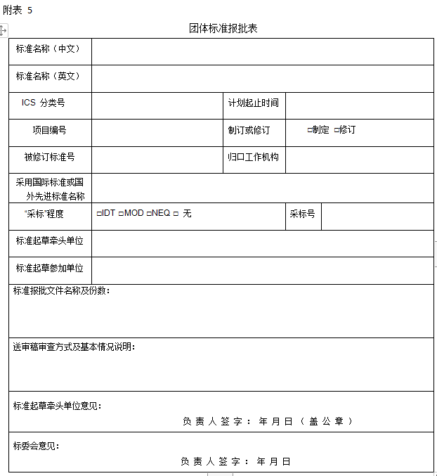 (一) 团体标准报批表(见附表5);