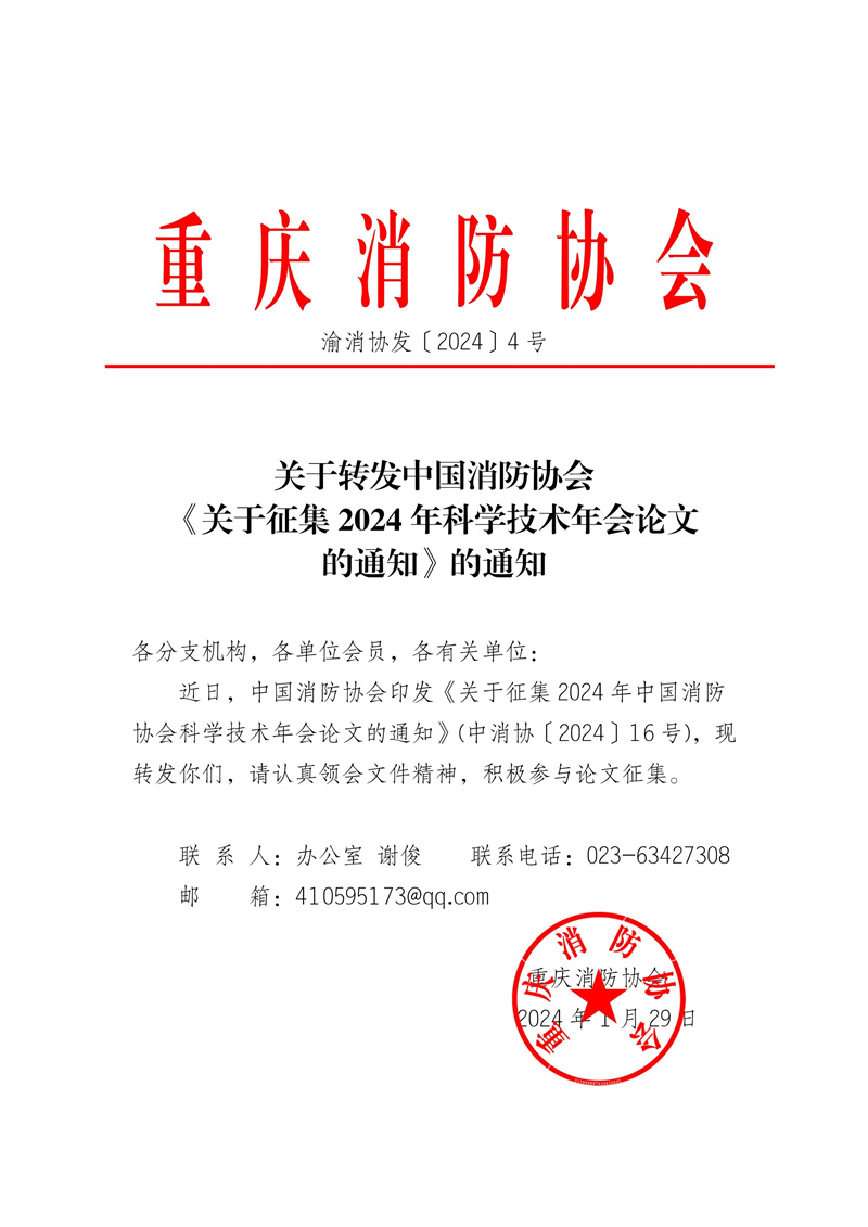 关于转发中国消防协会《关于征集2024年科学技术年会论文的通知》的通知