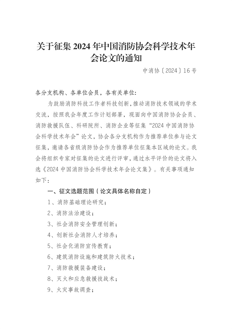 附件1:关于征集2024年中国消防协会科学技术年会论文的通知 点击链接打开下载