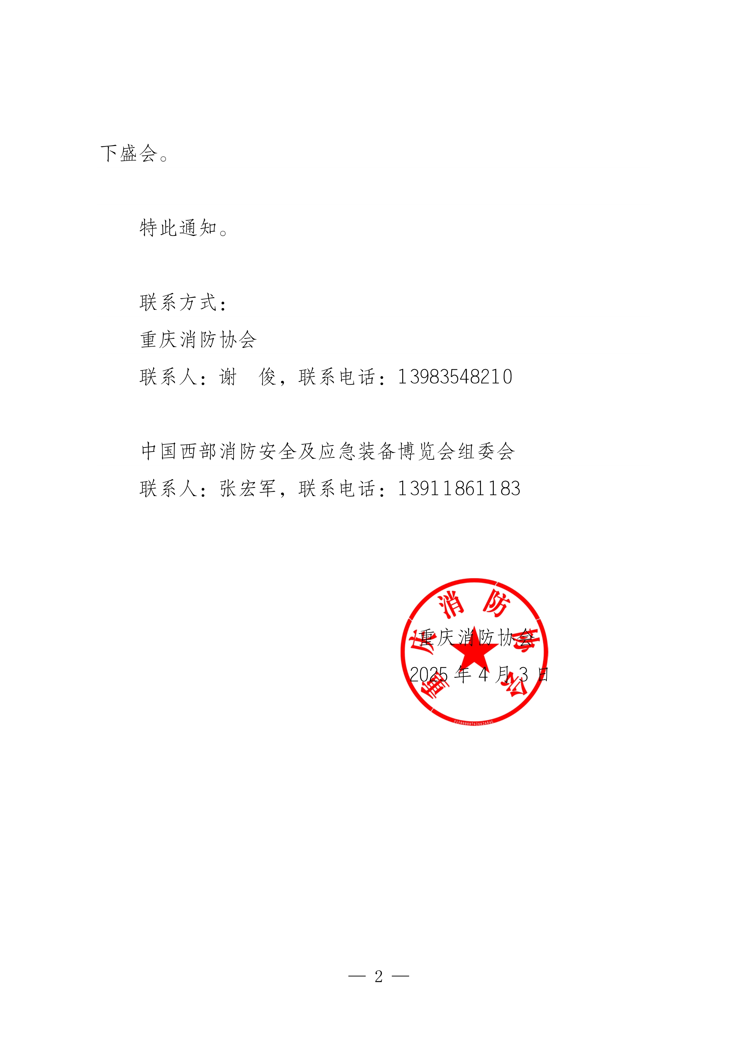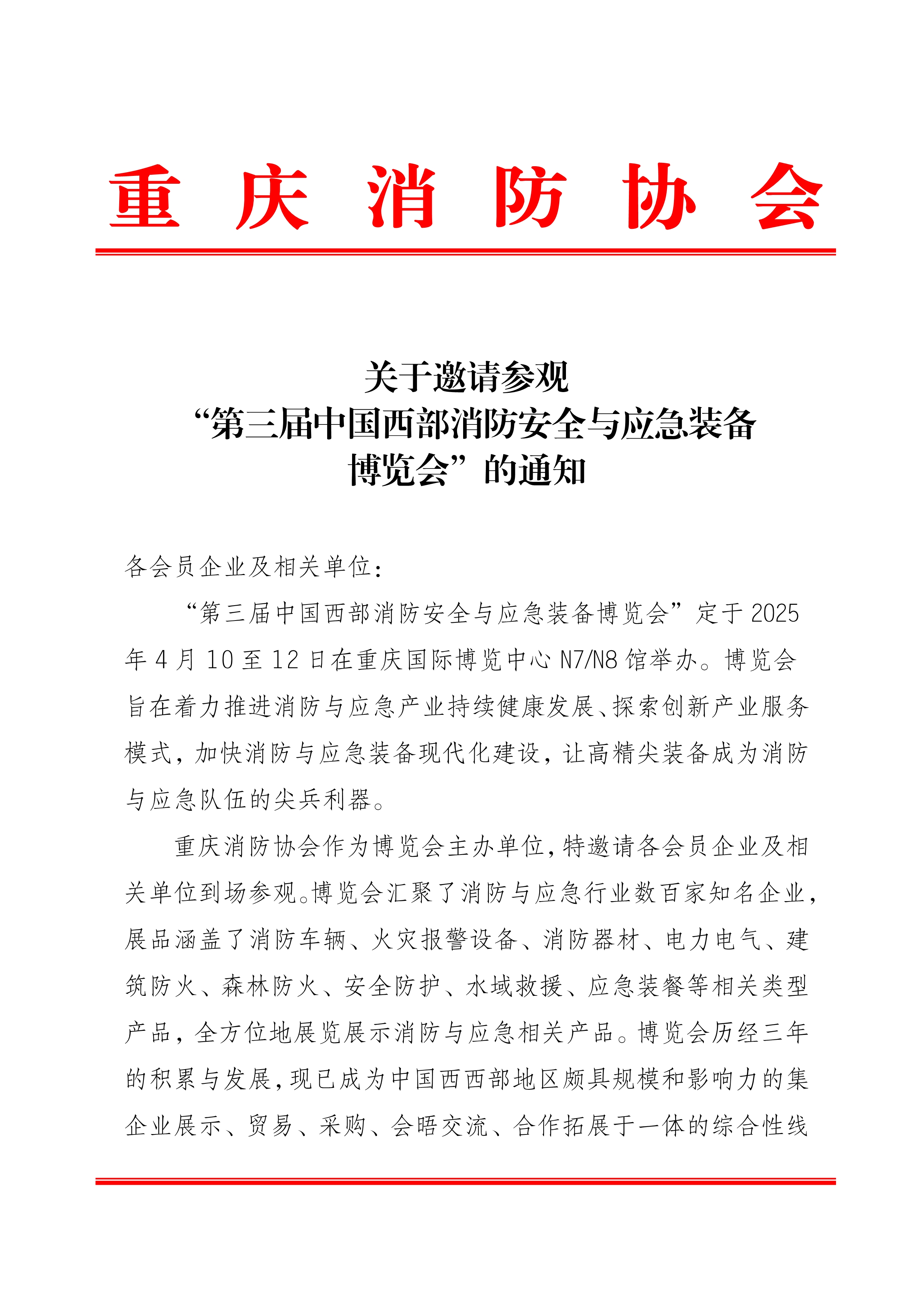 附件:关于邀请参观“第三届中国西部消防安全与应急装备博览会”的通知