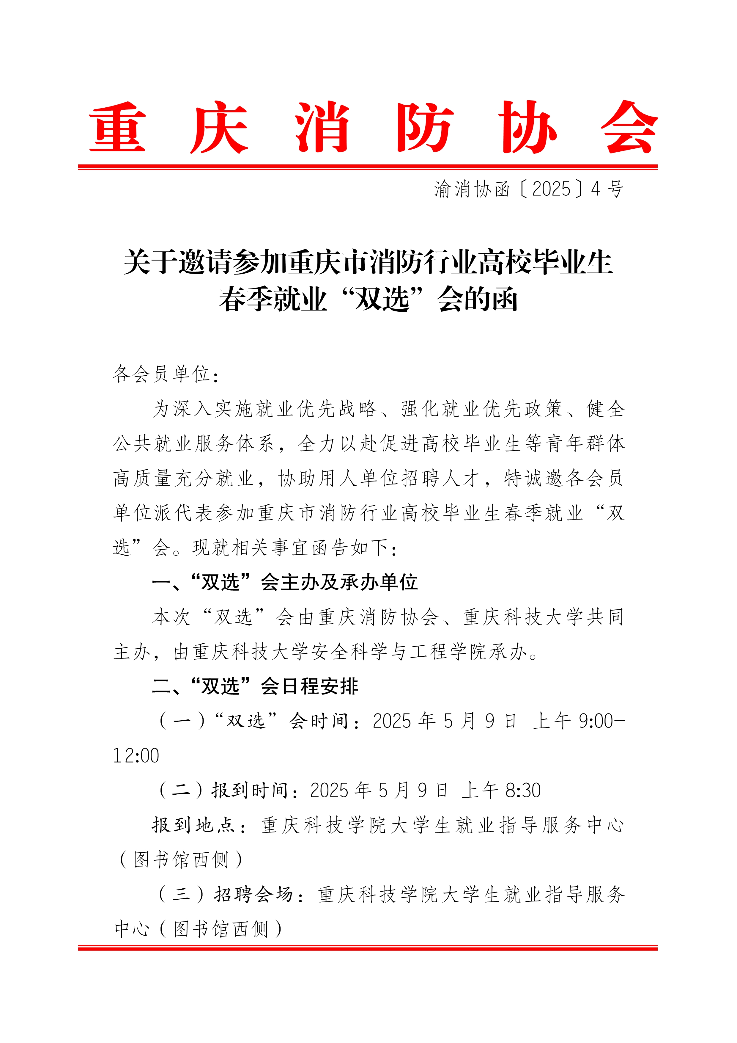 关于邀请参加重庆市消防行业高校毕业生春季就业“双选”会的函