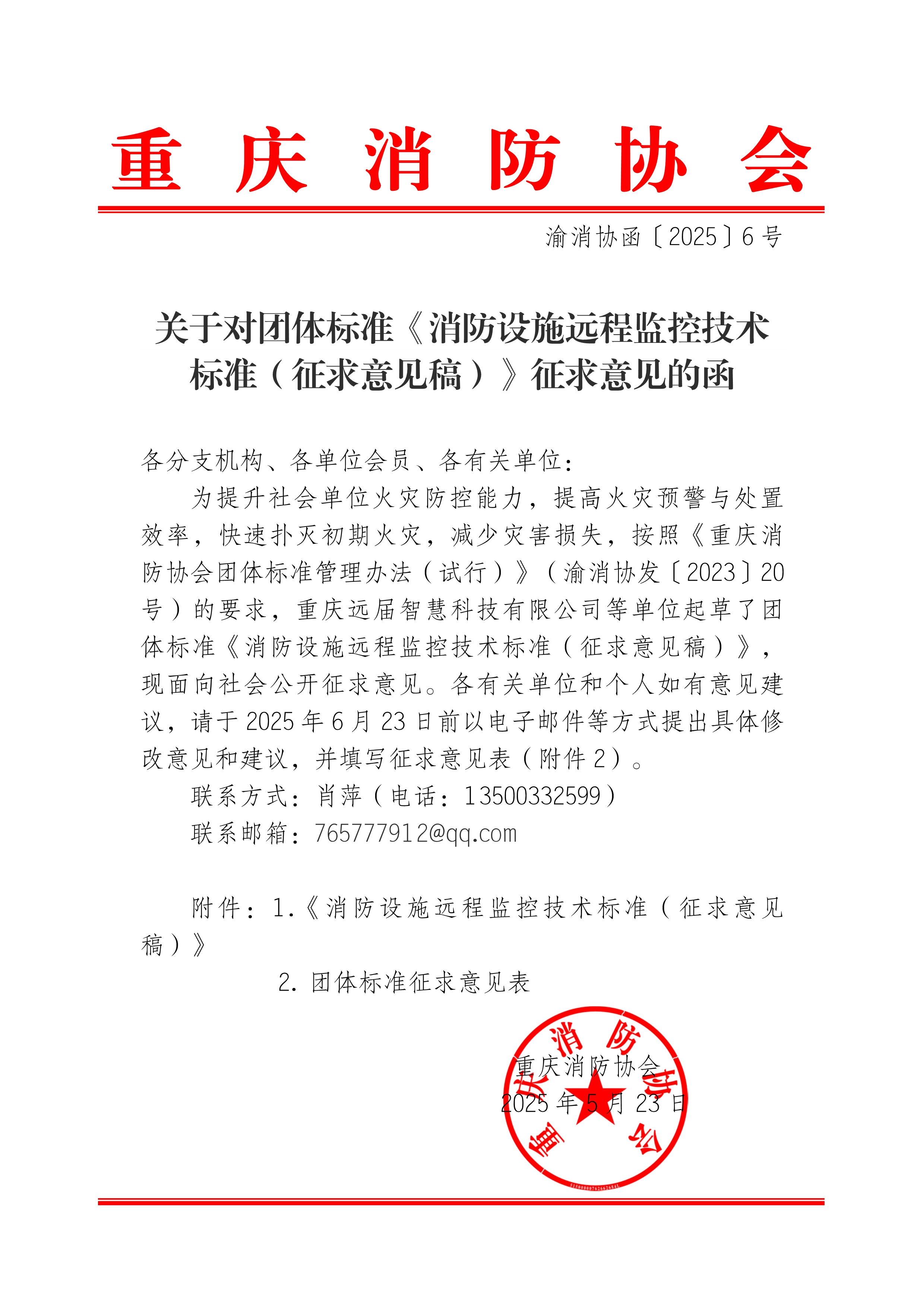 关于对团体标准《消防设施远程监控技术标准(征求意见稿)》征求意见的函