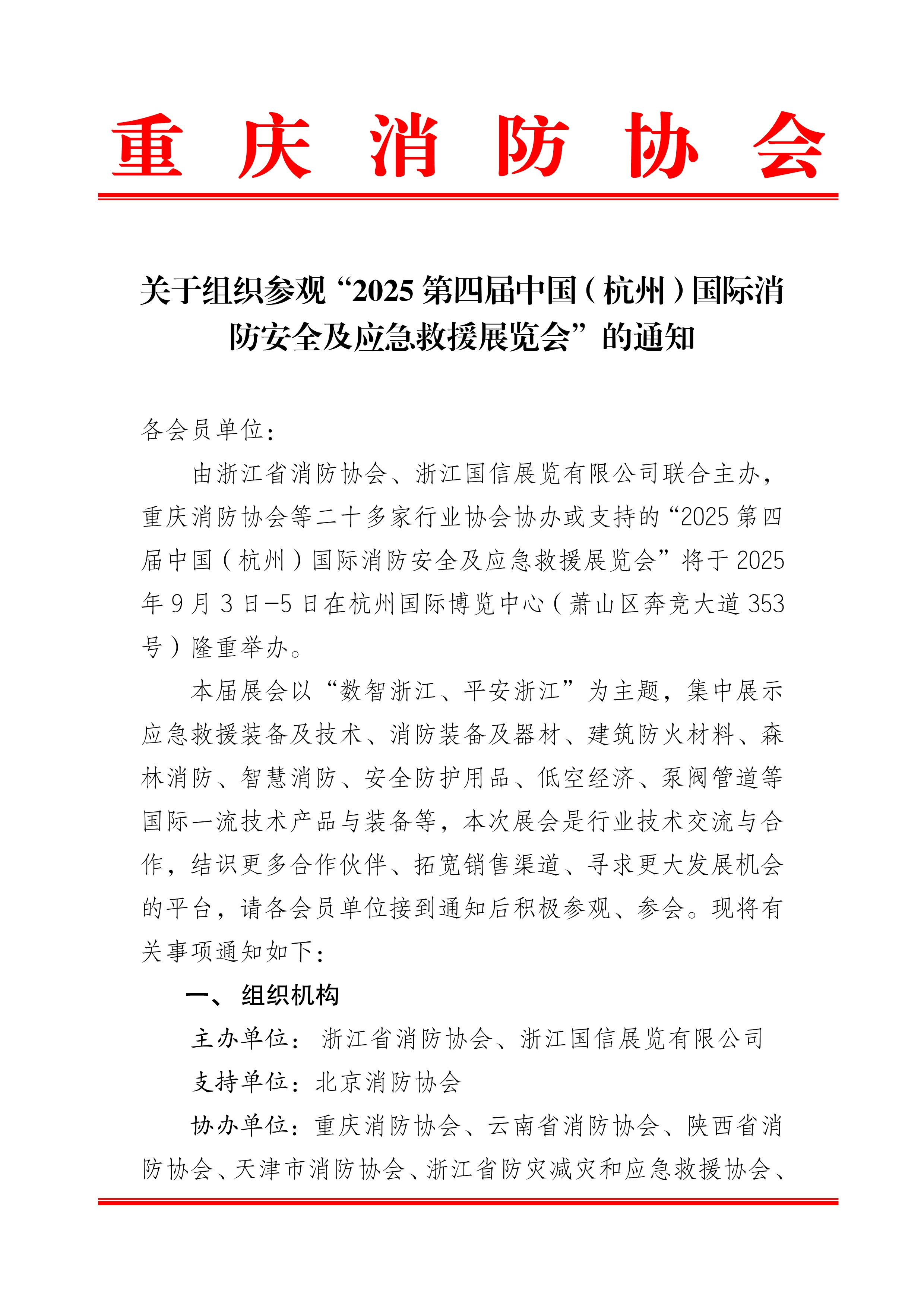 关于组织参观“2025第四届中国(杭州)国际消防安全及应急救援展览会”的通知